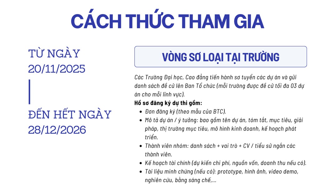 Giải thưởng dành cho Sinh viên hoặc nhóm sinh viên thuộc các Trường Đại học, Cao đẳng tại Hà Nội và các tỉnh thành khác trên toàn quốc có ý tưởng, dự án khởi nghiệp dựa trên khai thác tài sản trí tuệ, công nghệ, mô hình kinh doanh mới đang hoặc dự kiến triển khai trên địa bàn Hà Nội và các tỉnh thành khác trên toàn quốc.