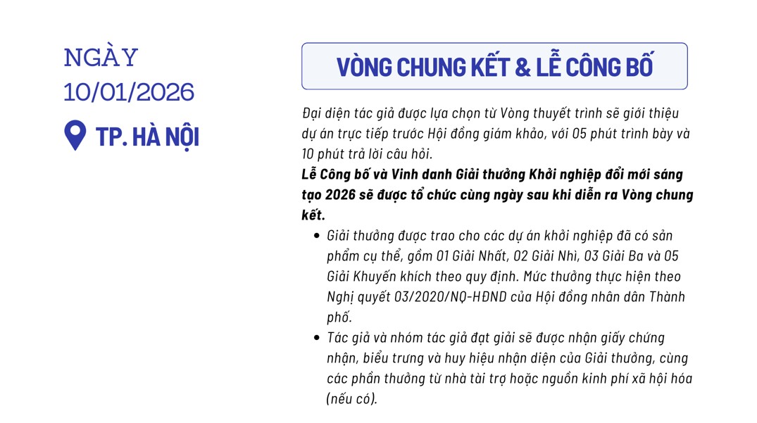 GIẢI THƯỞNG KHỞI NGHIỆP ĐỔI MỚI SÁNG TẠO HÀ NỘI